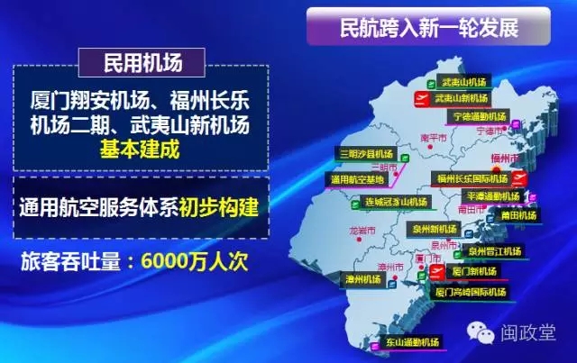 民航計劃完成投資800億,廈門翔安機場、福州長樂機場二期、武夷山新機場基本建成,通用航空服務體系初步構建。全省民航旅客吞吐量突破6000萬人次。